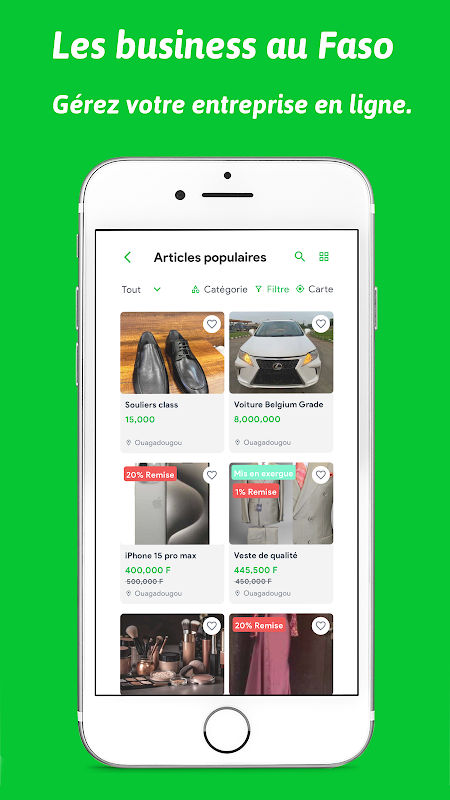 Fasobiz ist eine Online-Wiederverkaufsplattform in Burkina Faso, die für jeden die besten Angebote bietet. Kaufen und verkaufen Sie sicher und einfach. Fasobiz, die gute Business-Ecke in Faso!