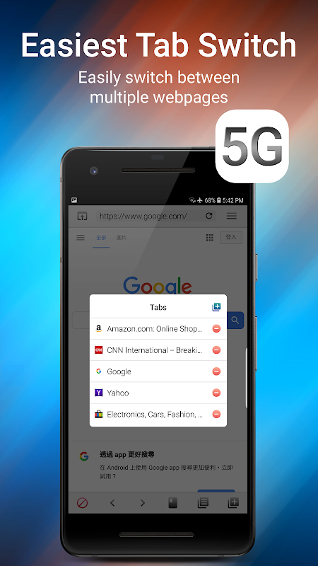 A fast modern web browser for Android. Fully updated for your mobile phone with simple to use control, one touch multiple browser tabs. Beautiful UI and fast response. Surf your favorite social media web sites and watch full screen video. Browse the internet safe with full privacy mode. Download your files from the web. New mobile broadband 4G technology network connectivity. This app works with 3G 4G and WiFi wireless networks and across many languages and Android versions.