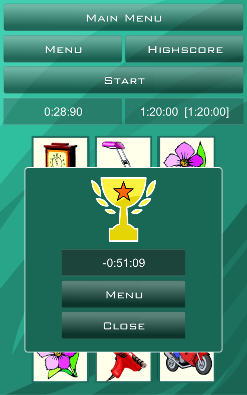 Drehe zwei Karten um und finde identische Bildpaare. Merke dir die verbliebenen, bis das passende Bildpaar aufgedeckt wird.