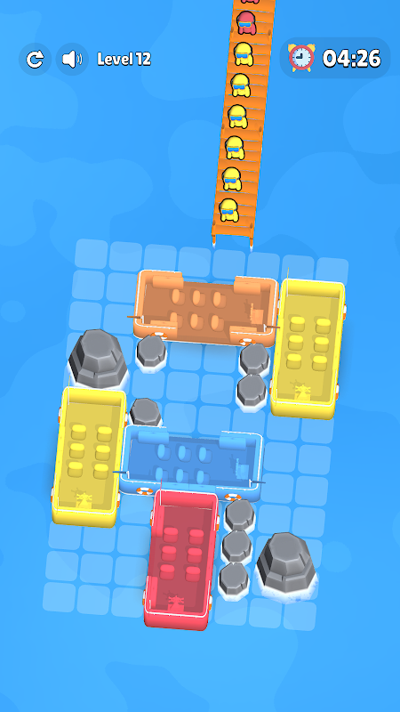 Sammle Strichmännchen, indem du den Weg zu den Fähren freimachst