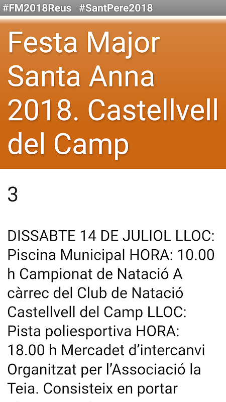 APP no oficial basada en el programa oficial 2018 publicat per l'Ajuntament de Castellvell del Camp. http://www.castellvelldelcamp.cat/media/upload/arxius/ajutament/llibret_festa_major_2018.pdf