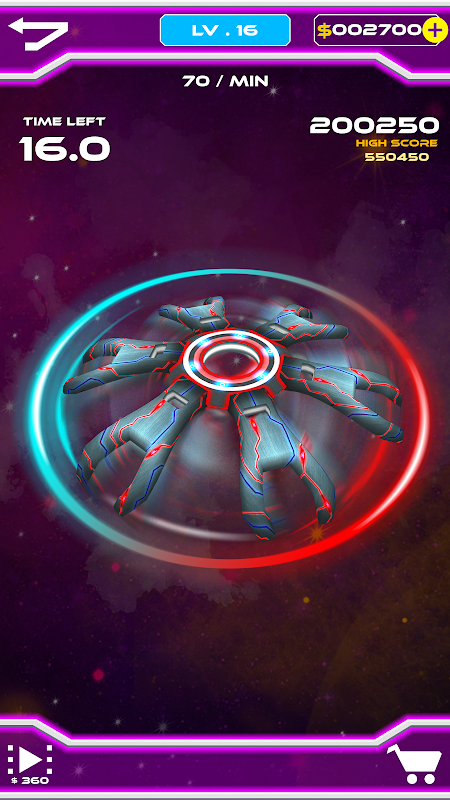 It has 6 very thoughtfully designed UFO like 3D Fidget Spinners, it has 3 Space Background, which you can buy with InApp Currency.