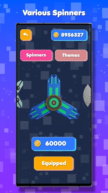 Der mobile Spinner ist ein Einhand-Spinner, den Sie auf Ihrem Gerät drehen können. Die Fidget-Spinnerblätter drehen sich um das Lager. Der Fidget-Spinner-Simulator bietet eine Reihe von Fidget-Spinner-Layouts, z. B. zwei- oder dreizackige Designs mit einem Lager im zentralen kreisförmigen Polster. Drehen Sie einfach den Spinner, schließen Sie das Level von Fidgets Spinner 2023 ab und schalten Sie die verschiedenen Fidgets Spinner frei.