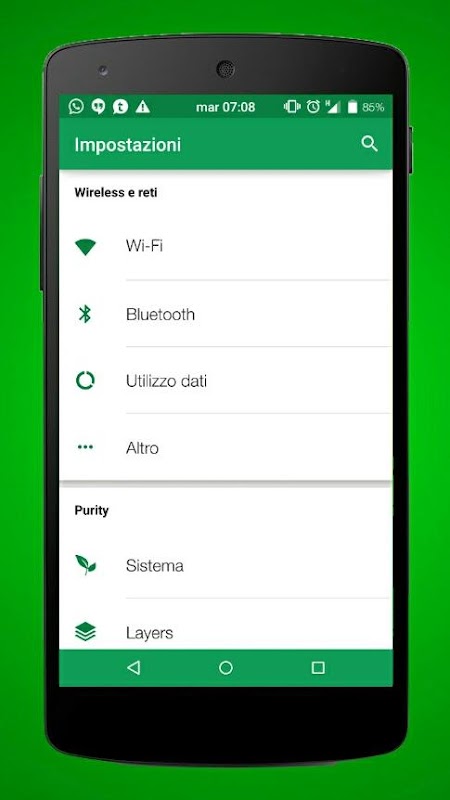 Il tema FieldGreen è stato sviluppato per essere compatibile con tutte le ROM che supportano Layers/RRO/Overlay (Purity, SlimLP, SimpleAOSP...).