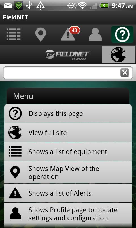 Remote verwalten Sie Ihre schwenkt, Hausanschlüsse, Tropf / Mikrobewässerungssysteme und Pumpen mit FieldNET Handy ab FieldNET von Lindsay. FieldNET Benutzer schnell zu überwachen und die Bewässerung steuern.
