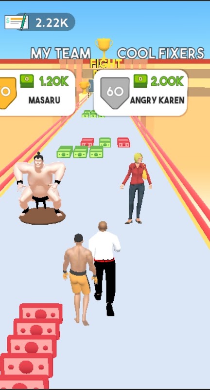 Der Held des Spiels Fighter Manager ist ein junger Mann, der als Manager arbeitet. Er beschäftigt Athleten in Kontaktsportarten wie Boxen, Karate und so weiter. Heute hilfst du ihm bei seiner Arbeit. Vor Ihnen auf dem Bildschirm sehen Sie die Straße, auf der Ihr Charakter unter Ihrer Führung laufen wird. Mit den Steuertasten zwingst du den Helden, um verschiedene Hindernisse und Fallen herumzulaufen, die auf seinem Weg auftauchen. Geldbündel werden an verschiedenen Stellen auf der Straße liegen. Dein Held muss sie alle sammeln. Sobald Sie einen trainierenden Athleten bemerken, müssen Sie auf ihn zugehen und ihn berühren. Wenn Sie genug Geld haben, werden Sie ihn einstellen und er wird Ihnen nachlaufen.