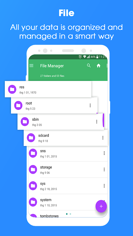 Manage all files and folders in local device storage, files, and folders in SD Card. Browse file system, whole storage systems via the app