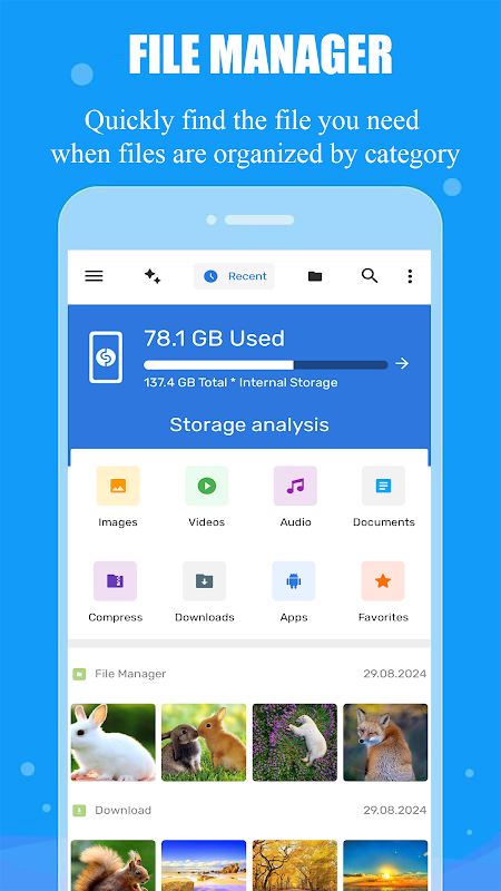 Unterstützung mehrerer Dateiformate: Öffnen Sie Videos, Musik, Dokumente, APKs und komprimierte Dateien mit einem Fingertipp.