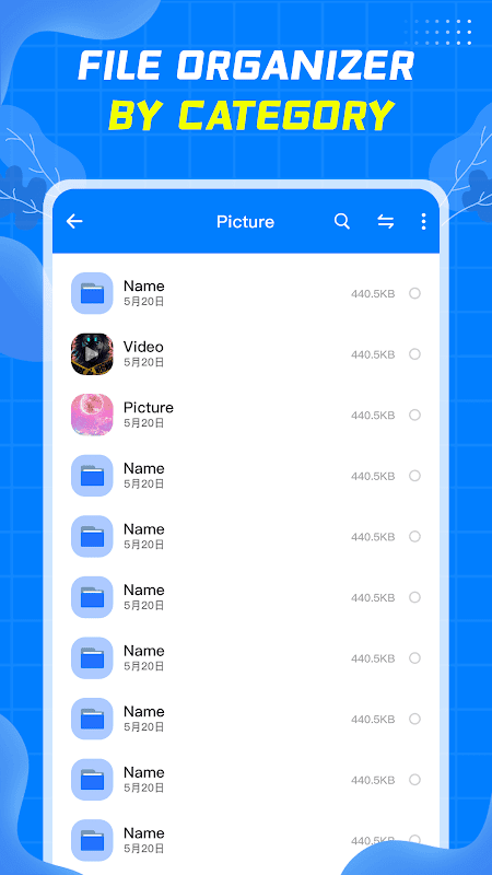 - Easy File Manager automatically categorizes files, including Picture, Video, Download, Apk, Music, Arctic, allowing you to quickly find the files you are looking for.