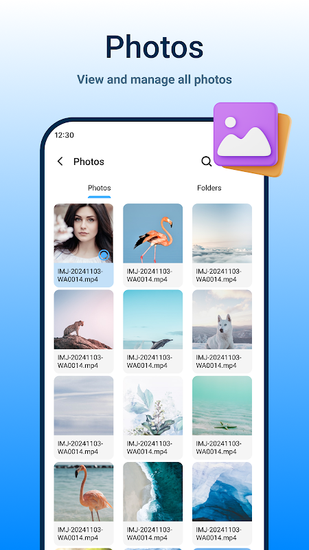 Verwalten Sie Ihre Dokumente, Mediendateien und andere Daten wie ein Profi. Passen Sie Ihre Ordner an, um Ihre Daten organisiert zu halten. Verwalten Sie Videos, Bilder und Audiodateien effektiv in dieser Medienmanager-App.