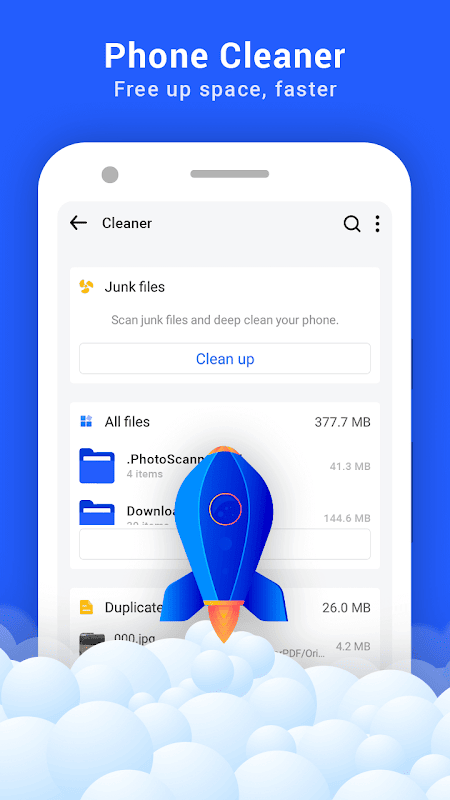 Mit nur wenigen Fingertipps können Sie schneller und einfacher als je zuvor Speicherplatz freigeben: alte Fotos und Memes aus Chat-Apps löschen, doppelte Dateien entfernen, ungenutzte Apps löschen, Ihren Cache löschen und mehr.