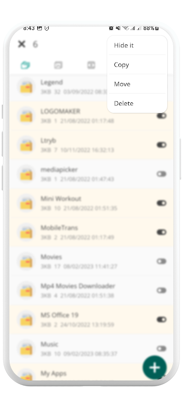 Files Hide ist eine intuitive und benutzerfreundliche Dateimanager-App, die eine umfassende Reihe von Funktionen bietet, mit denen Sie Ihre Dateien effektiver verwalten können. Mit Files Hide können Sie Dateien und Ordner mit nur wenigen Klicks ganz einfach löschen, kopieren, verschieben und ausblenden.