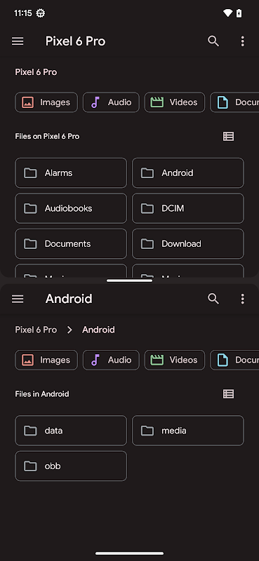Einfacher Zugriff auf die Ordner „Android/data“ und „Android/obb“.