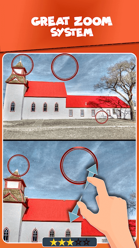 ⦁ Finden Sie heraus, was der Unterschied ist, und vervollständigen Sie das Ziel, 5 Unterschiede in den Bildern zu finden, die für jedes Level angegeben wurden
