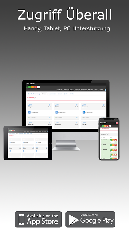 Mit der mobilen Applikation kann die FineControl Alarmzentrale und Ihre Komponenten intuitiv und sicher von überall aus bedient werden.