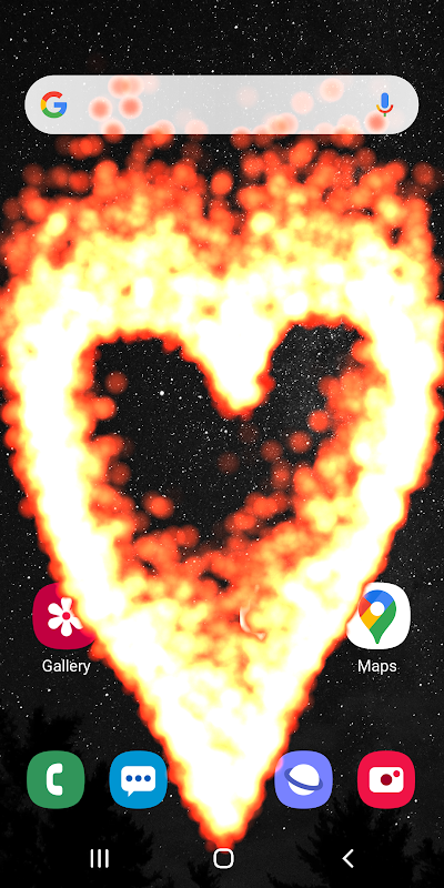 Diese coole App zeigt sehr realistische Flammenanimationen auf dem Bildschirm Ihres Telefons an. Der Feuereffekt wird an der Stelle angezeigt, an der Sie den Bildschirm mit dem Finger berühren. Dieses Werkzeug verwendet ein fortschrittliches grafisches Partikelsystem, dank dessen Verhalten, Bewegung und Erscheinungsbild des Feuers sehr natürlich aussehen. Darüber hinaus überwacht die App die aktuelle Neigung des Telefons in Bezug auf die Erde mithilfe eines eingebauten Beschleunigungssensors und passt die Richtung der brennenden Flammen entsprechend an.