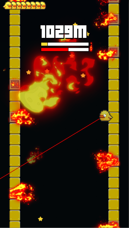Firebird is a casual game where you aim and tap to control the bird to jump and climb walls, avoid fire, and fly up the sky. The bird needs to avoid being burnt by fire to survive and proceed.