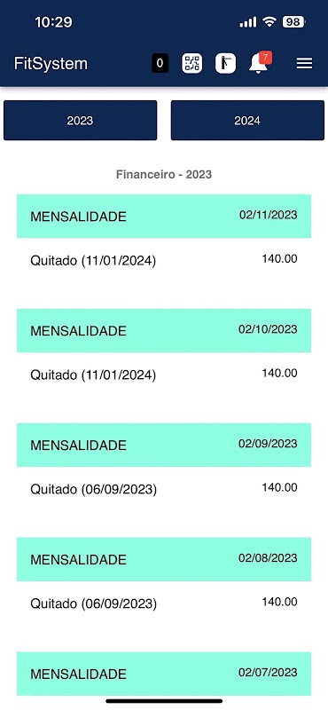 3. Finanz: Der Schüler kann sehen, die im laufenden und im Vorjahr gezahlten Beträge, und alle ausstehenden Gebühren.