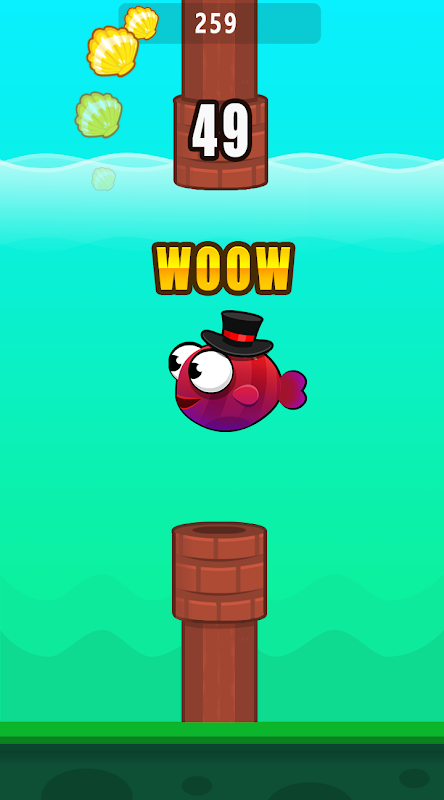 All you have to do is move the flappy fish up and down by tapping on the screen to beat the obstacles and score high.