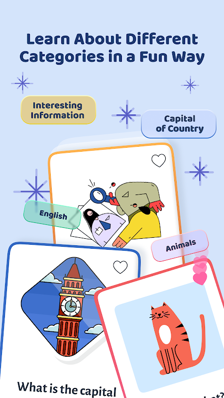 ✅ Regelmäßige Updates – Neue Karten & Kategorien wie Vokabeltrainer und spannende Fakten kommen regelmäßig dazu 🔄