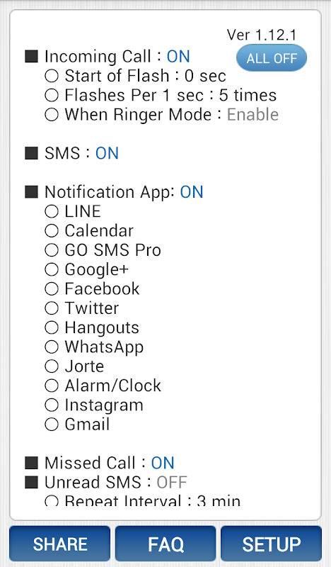 # Missed Call / Unread SMS Flash / Repeat Notification