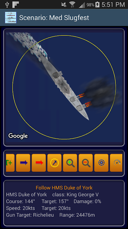 Flottenkommandant ist eine vollständig anpassbare "Sandbox", mit der Sie eine beliebige Kombination aus Schlachtschiffen, Schlachtkreuzern, Kreuzern und Zerstörern aus der Zeit des Zweiten Weltkriegs in Echtzeit-Kampfszenarien gegeneinander antreten lassen können. Flottenkommandant umfasst Schiffe aus den USA, Großbritannien, Nazi-Deutschland, Italien, Frankreich und Japan. Mit Google Maps als Hintergrund kannst du deine Schlachten so gestalten, dass sie überall auf der Welt stattfinden. Entwirf deine Szenarien basierend auf tatsächlichen historischen Schlachten oder entwirf Schlachten, die nie stattgefunden haben. Sehen Sie, was passiert, wenn ein Schlachtschiff der Iowa-Klasse auf die Yamato trifft oder die HMS King George V mit einigen schweren Kreuzern der County-Klasse auf Bismark und Tirpitz trifft. Zoomen Sie heran und beobachten Sie, wie sich die großen Türme der Schlachtschiffe drehen und Feuer und Rauch speien, während sie ihre Granaten auf ihre Ziele schleudern. Wechseln Sie sofort die Ansicht, um zu sehen, wie sich die Granaten einschießen und Ziele treffen, die je nach Granatengröße und Panzerung Schaden anrichten. Zoomen Sie heraus und erhalten Sie einen Gesamtüberblick über die sich entwickelnde Schlacht. Die Möglichkeiten sind endlos und nur durch Ihre Vorstellungskraft begrenzt.