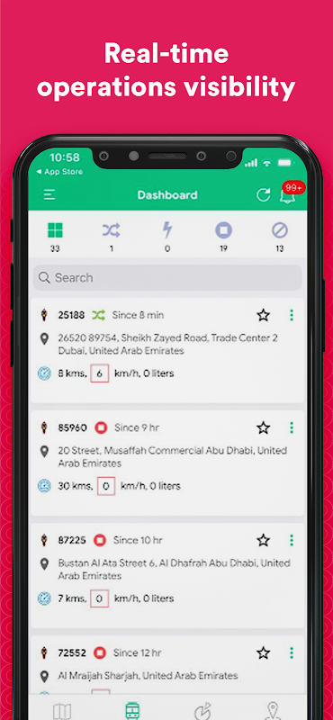 Die Fleetroot-Tracking-App wurde für Flottenmanager und Disponenten entwickelt, um unterwegs vollständige Transparenz und Kontrolle über ihre physischen Vorgänge zu erhalten. Erhalten Sie einen vollständigen Überblick über unsere Flotten- und Ressourcenleistung in Echtzeit, erhalten Sie die Produktivität Ihrer Fahrer in Echtzeit und vieles mehr.