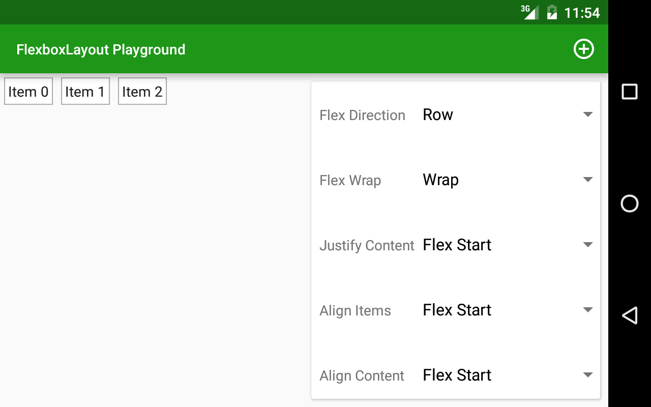 Diese App können Sie die verschiedenen Attribute erforschen, die auf die Android-Implementierung von FlexboxLayout angewendet werden kann, und es ist Kind Blick.