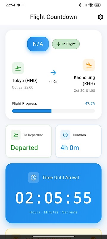 Sie müssen nicht mehr raten, wie lange es noch bis zur Landung dauert – Flight Countdown berechnet es für Sie.