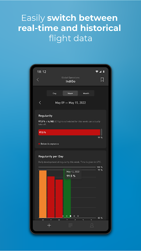 Gehen Sie in der Zeit zurück, um die Betriebsleistung einer Fluggesellschaft oder eines Flughafens an einem bestimmten Tag, einer bestimmten Woche oder einem bestimmten Monat nachzuschlagen. Identifizieren Sie ganz einfach Trends und Schwächen oder verfolgen Sie Flugplanänderungen.