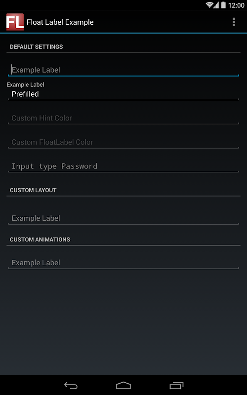 • Float Label Example Screenshot 5