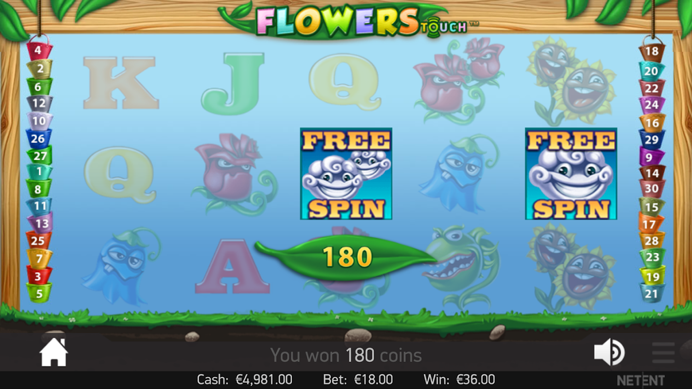 It may not be your everyday plant life, but with double symbols, stacked wilds and free spins up for grabs, there’s every reason to become acquainted with the funky flora in video slot Flowers. Flowers’ standout feature is its double symbol system. Double symbols count as two regular standard symbol, offering comparatively huge pay outs on regular combinations. Indeed, match five double-rose symbols, and you’ll win 1,000 coins! Sun wilds can substitute for any regular symbol, and stacked wilds appear during free spins. Land four or more cloud free spin symbols to receive up to 30 free spins and a x3 multiplier. Five wilds wins you 2,500 coins.