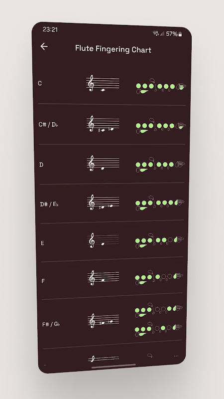 Keep learning and playing with Flute Fingering Chart - your all-in-one app for fingering charts, scales, tuner, metronome, and virtual flute