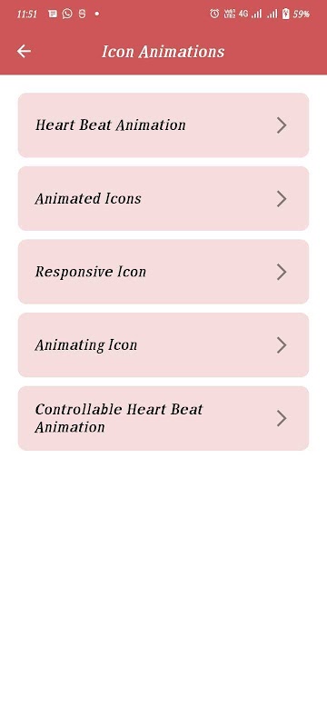 Nachfolgend finden Sie die Animationen, die Sie in der Flutter-Animationsgalerie-App finden.