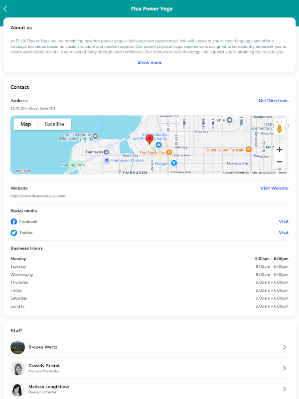 Laden Sie die App herunter, um Zeitpläne anzuzeigen und Sitzungen bei Flux Power Yoga zu buchen