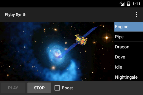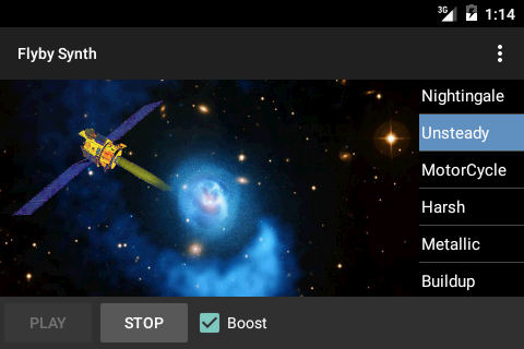 Der erzeugte Klang wird kontinuierlich durch Bewegen der Sonde über den Bildschirm angepasst. Dies wird typischerweise durch Kippen des Telefons oder einer Tablette erfolgt. Wenn dies nicht vom Gerät unterstützt wird, dann einfach die Position der Raumschiffe bewegen durch Antippen des Displays an verschiedenen Standorten.