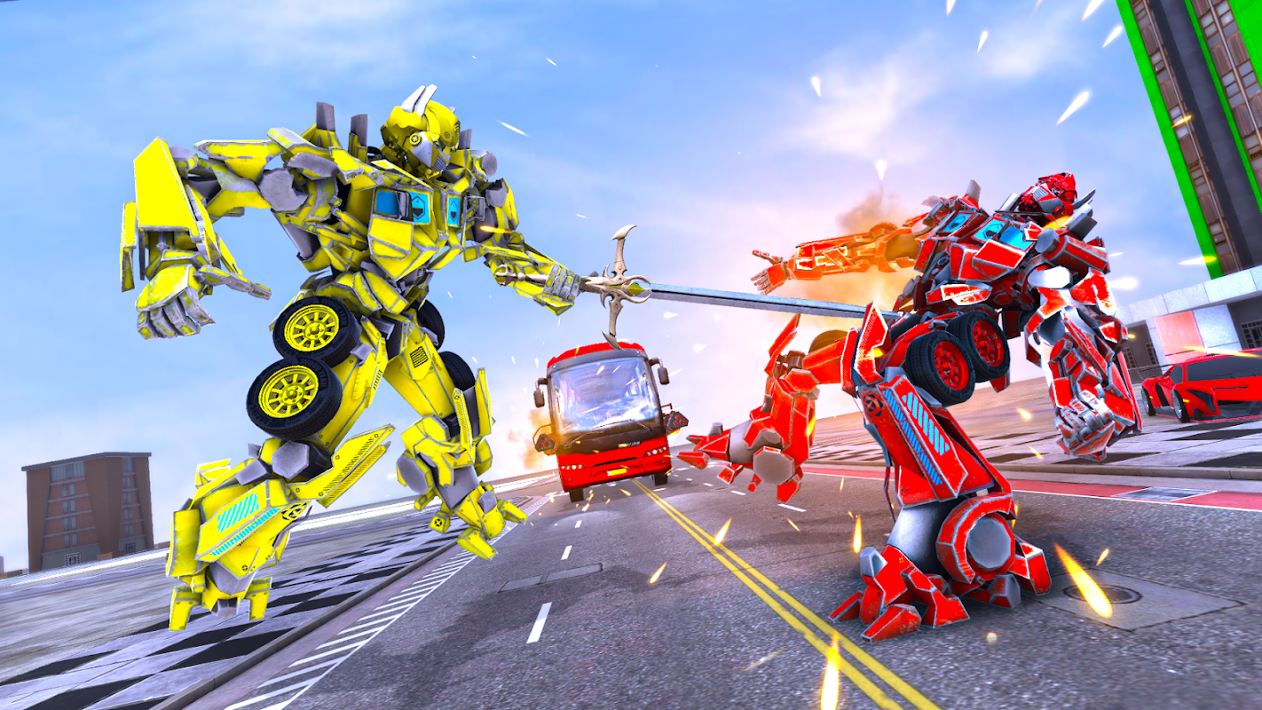 Mit der aufkommenden Innovation bewegt sich das Interesse der Spieler in Richtung Transformation von Roboterspielen und Roboterkampfspielen. Aus diesem Grund versuchen wir, etwas zu geben, das mit der Transformation von Roboterautos verborgen ist. Das Fireball Bus-Roboterspiel gehört zu den besten Roboterspielen, die Sie als Multi-Roboter-Transformationsspiel einsetzen möchten. Abgesehen davon, dass der Roboter in einen Feuerball und einen Bus verwandelt wird, wird eine enorme Sammlung von Superkräften zur Verfügung gestellt, um unerhörte Roboter-Kampfmissionen von Bergungsspielen zu erreichen. Das Fireball Bus-Roboterspiel in Roboterkriegsspielen lässt Sie nie erschöpft. Der Wechsel des Fahrzeugroboters zum roten Ballroboter ist vernünftig genug, um Sie zu einem Anhänger unseres Feuerballroboters zu machen. Es ist überhaupt nicht wie bei anderen kostenlosen Roboterspielen.