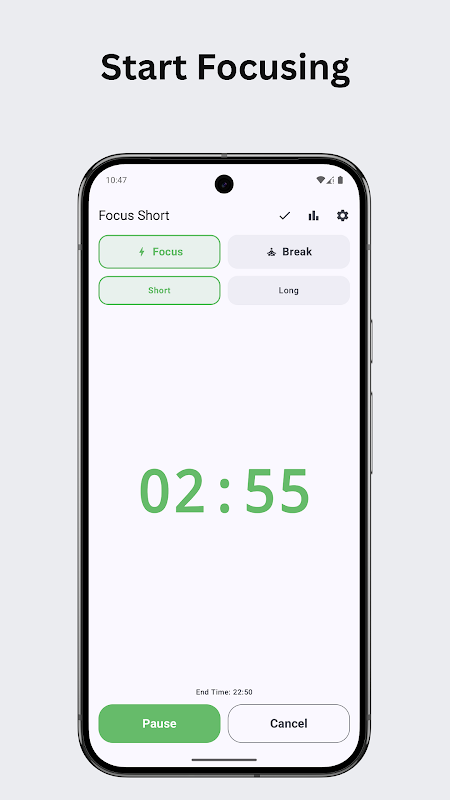 Konzentrationsschwierigkeiten? Der Fokus-Timer hilft Ihnen, den Überblick zu behalten – mit kurzen und langen Sitzungsmodi, die Ihre Konzentration schärfen. Inspiriert von der Pomodoro-Technik ist er ein einfaches und intuitives Tool zur Verwaltung Ihrer Arbeits- und Pausenzeiten.