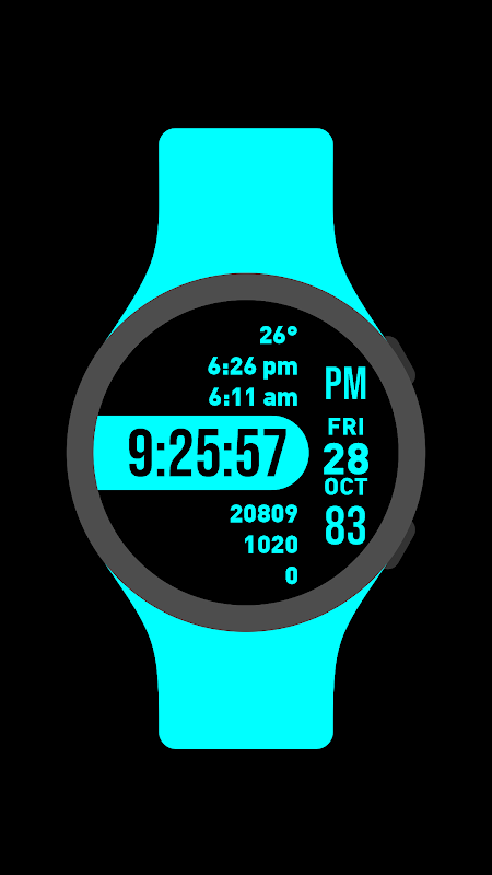 Focused Watchface ist ein digitales Zifferblatt für Wear OS-Smartwatches mit großen Zahlen und 18 Farbthemen.