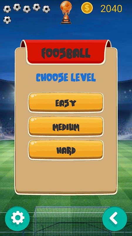It`s an interesting and funny 3d foosball ( football ) game, which has 3 playing modes, different stages of difficulty and a beautiful easy understandable design. There is no difficulty of playing this game, it is just a fun. You can play alone or with friends on the same device and online as well.