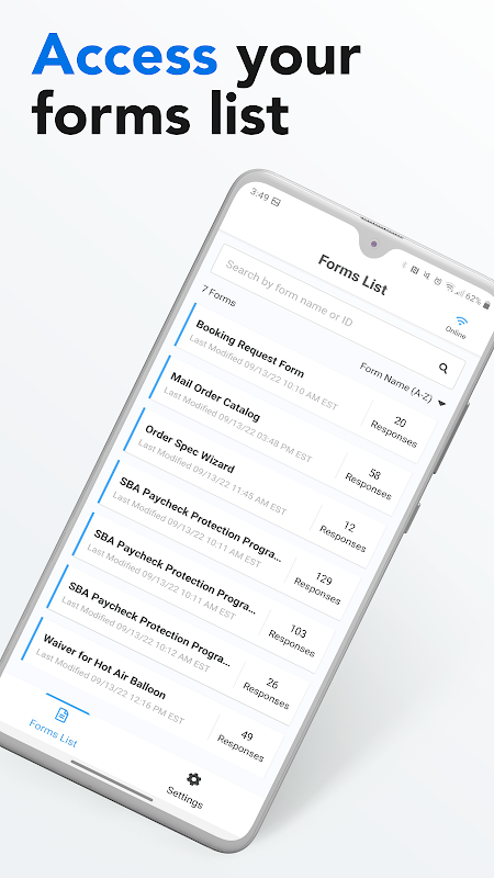Einfach – Suchen und sortieren Sie schnell aktive Formulare für einen einfachen Zugriff und eine einfache Übermittlung, und referenzieren oder löschen Sie dann nahtlos alle Antwortmetadaten für jedes Formular.