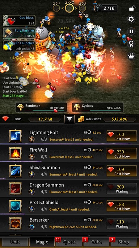 6. There are also units using magical power(Sorcerer, Cleric, Nightmare, Summoner, Priest, Wizard). They can cast very powerful magic. Upgrade their HP to survive longer.