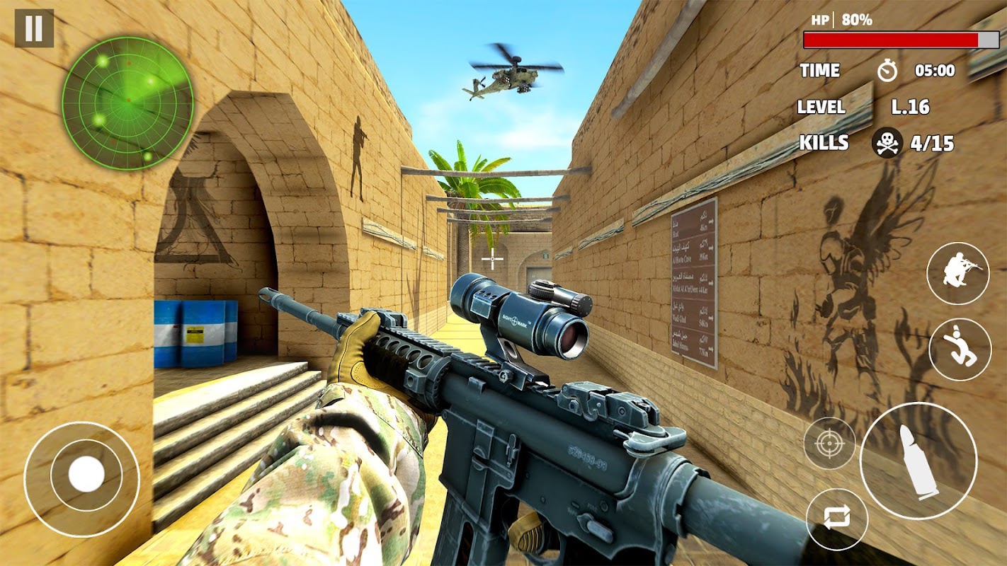 In diesem modernen Shooter-Offline-Spiel geht es nicht nur ums Überleben; es geht um Herrschaft. Sei es mit einem Scharfschützen oder einer Minipistole, Ihre Mission in diesem Offline-Kommandoangriffsspiel ist es, dem Terror standzuhalten. Erleben Sie den Trubel des Schießspiels, während Sie das Schlachtfeld meistern.