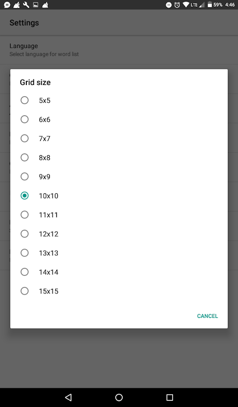 - Grid size like : 5X5, 6X6, 7X7 , .... 15X15 etc..