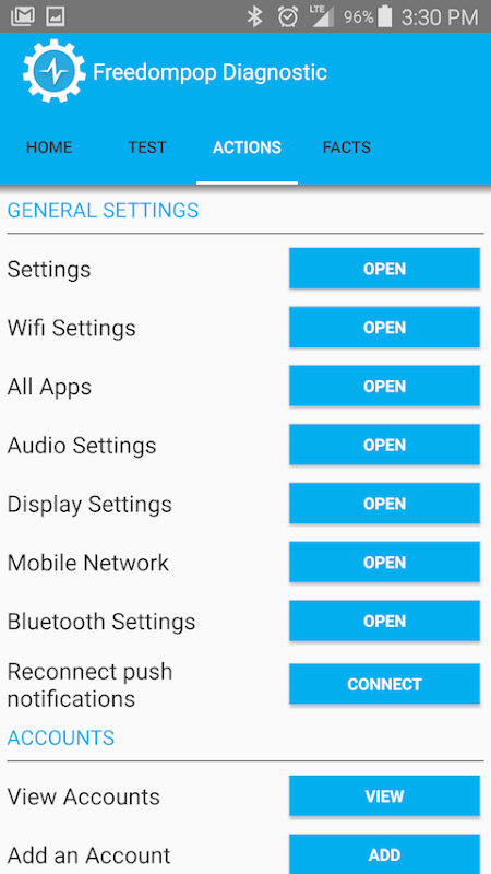Freedompop Diagnostics App richtet sich die Fehlerbehebung zu beschleunigen.