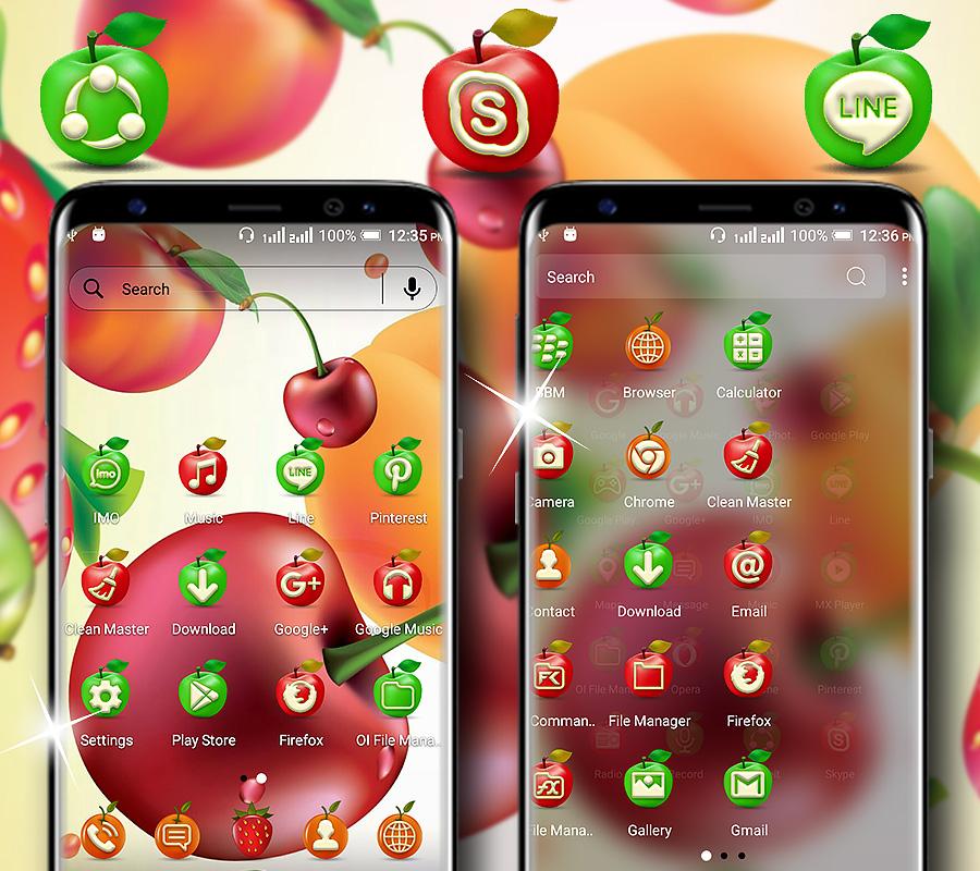 • Fruit Launcher Theme mit Apple HD Wallpaper ohne Zuschneiden oder Strecken.