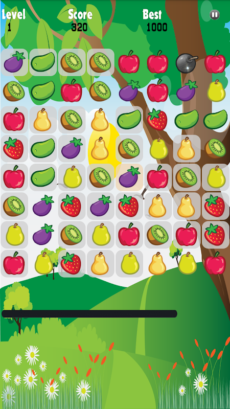 3 or more the same fruits being connected in a line, they will be removed,Switch and match fruit to challenge HighScore!!
