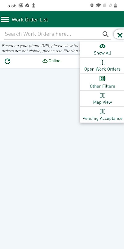 1. The On My Way truck icon displays on the Work Order List screen for work orders with an active On My Way. 2. When users with an active check-in are prompted to check out of the work order when viewing a different work order, check-in / check-out options display as expected on the work order after tapping No on the prompt. 3. For work orders with an active On My Way that are moved to a post-work status, the Cancel On My Way option does not display when viewing the work order in the mobile app.