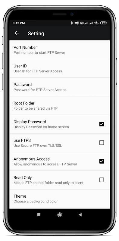 Die Portnummer sollte größer als 1024 sein, da eine Bindung an Ports wie 21 auf nicht gerooteten Telefonen nicht möglich ist. Die Standardportnummer ist auf 2221 konfiguriert und kann über den Einstellungsbildschirm geändert werden.