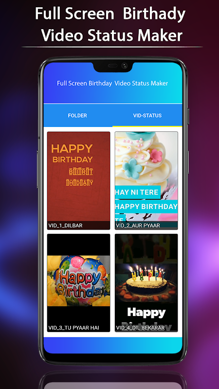 Birthday Full Screen Video Status is application which provide you to best and simple way to change your videos status every day in this you easily change your status daily with new videos.this application which have best collection of awesome full screen video status to share your own social side story. Here you get entry to the songs which are being Birthday by everyone.this app serves a variety of short videos which is suitable to post on every social sides stories directly.